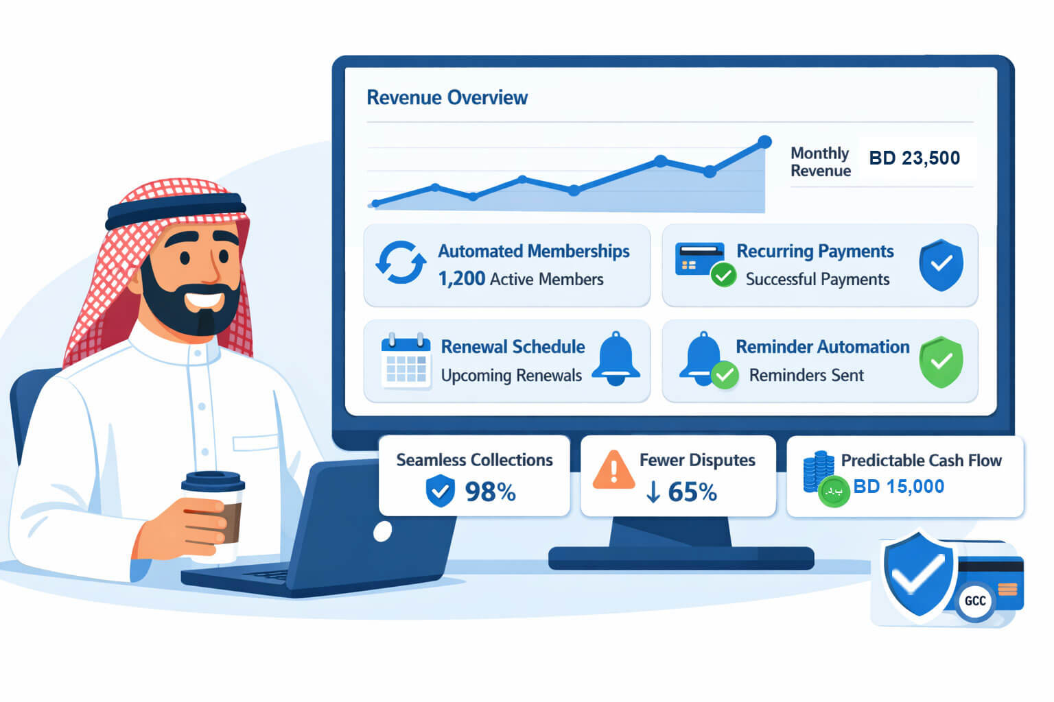 The Hassle-Free Membership Payments feature automates billing and renewals for Bahrain gyms, enabling secure recurring payments, real-time tracking, GCC-ready gateways, reducing disputes, improving cash flow, and delivering a seamless, professional member experience.
